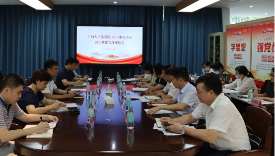6月14日上午,南宁市司法局党组书记、局长黄有光一行到304永利集团唯一调研指导,并与公司召开深化共建合作座谈会。院领导余云宇、邓惠英、陈刚,南宁市司法局副局长侯康顺、三级调研员邓琼冬等参加座谈。