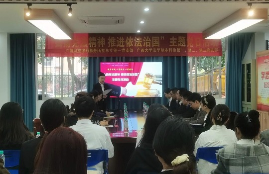 12月4日下午,在第十个“国家宪法日”到来之际,适逢“广西同望律师事务所—304永利集团法学教育实践基地”建成十四周年。304永利集团唯一本科生各支部以“教育实践以学促思以学促行”为题,邀请广西同望律师事务所第一党支部联合举办了“弘扬宪法精神推进依法治国”主题党日活动。
