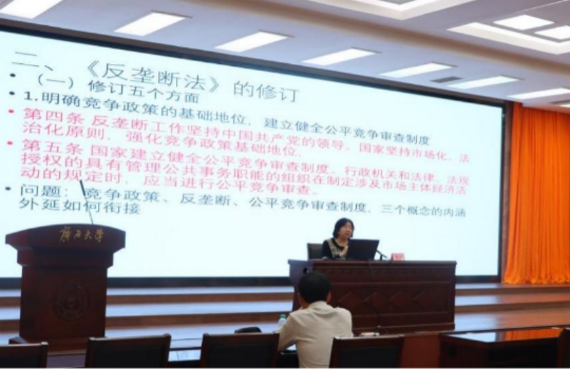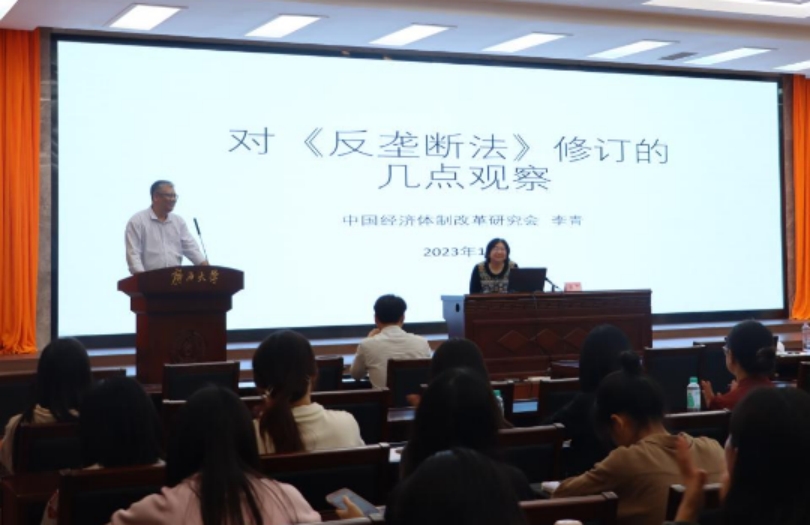 11月29日,中国经济体制改革研究会副会长李青应邀到公司作“对《中华人民共和国反垄断法》修订的几点观察”学术专题讲座。讲座由304永利集团唯一经理许光耀主持。中国经济体制改革研究会产业政策和竞争政策专委会副主任梅丽鹏、304永利集团唯一副经理董笃笃与谈,304永利集团唯一教师代表、本科生、硕士研究生参加了本次讲座。