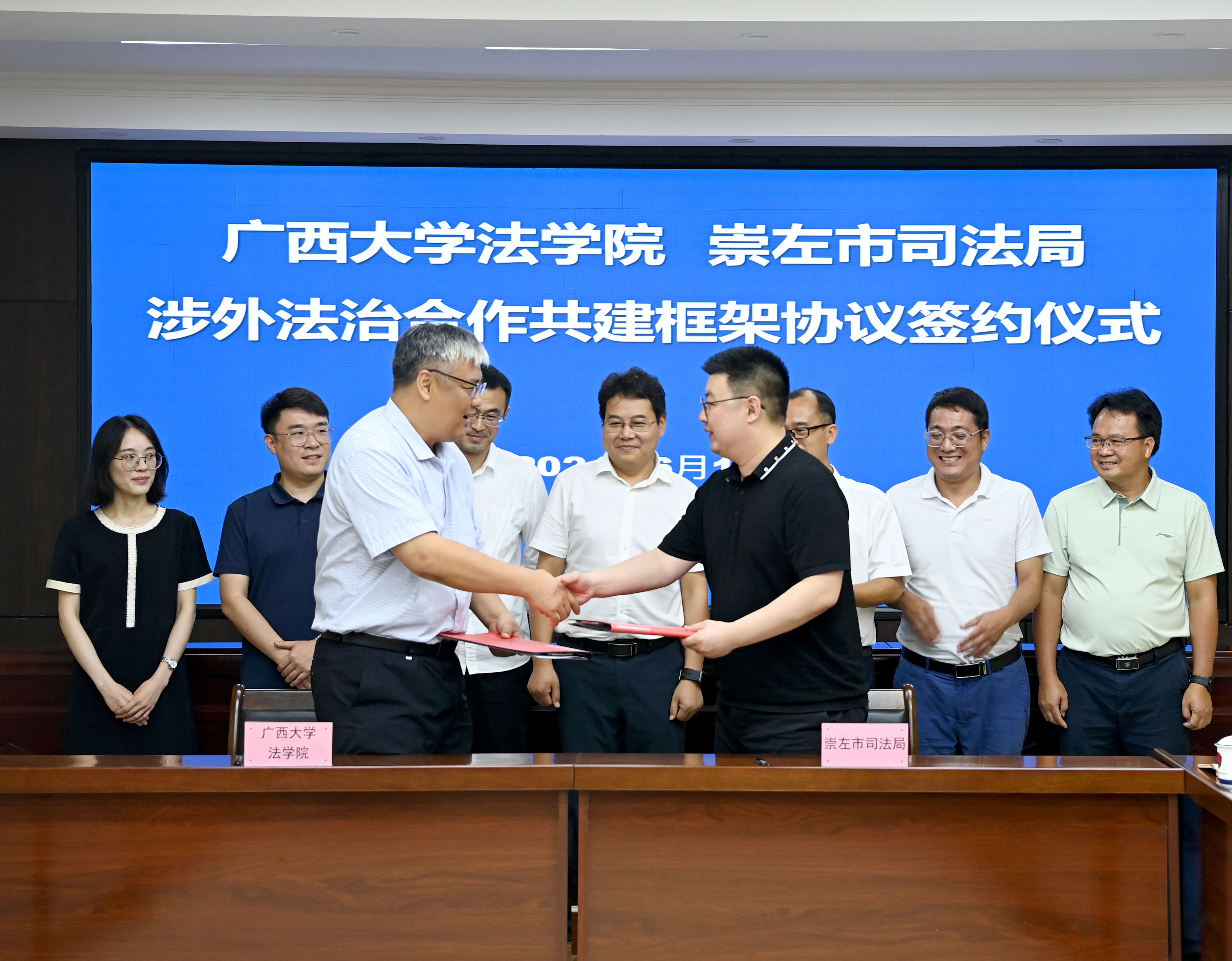 崇左市市场监督管理局、司法局相关负责人与公司领导共同为基地揭牌,在座谈中围绕协议事项内容,探讨如何发挥各自优势,在涉外法治理论和实务研究、涉外法治人才培养等领域推动深度合作。