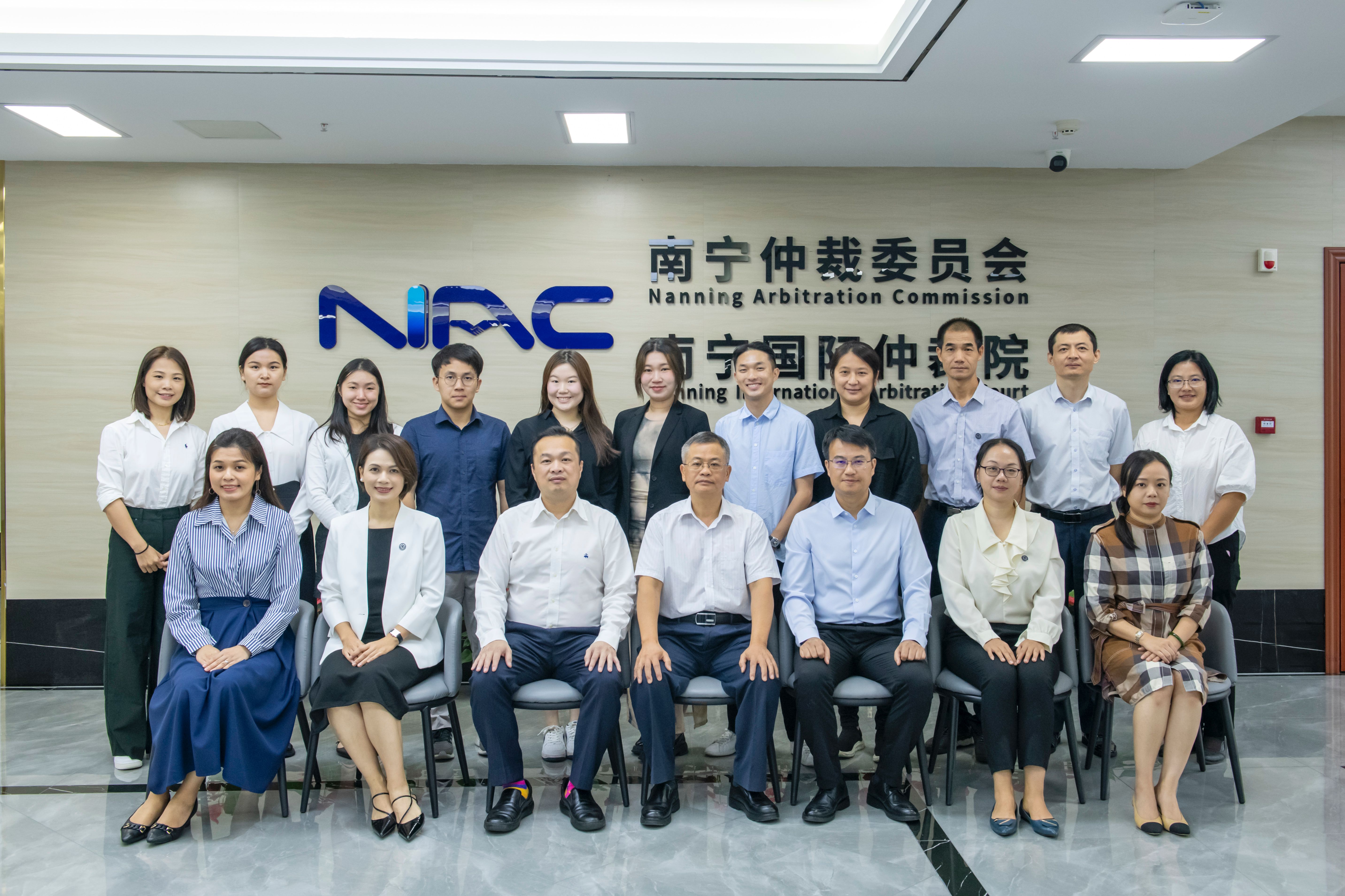 亚洲多元争议解决研究院(AIADR)商务发展和国际关系委员会主任陈行昌律师、南宁仲裁委副主任兼秘书长蓝旭高、副秘书长刘冬冬、颜慧等参加座谈交流。