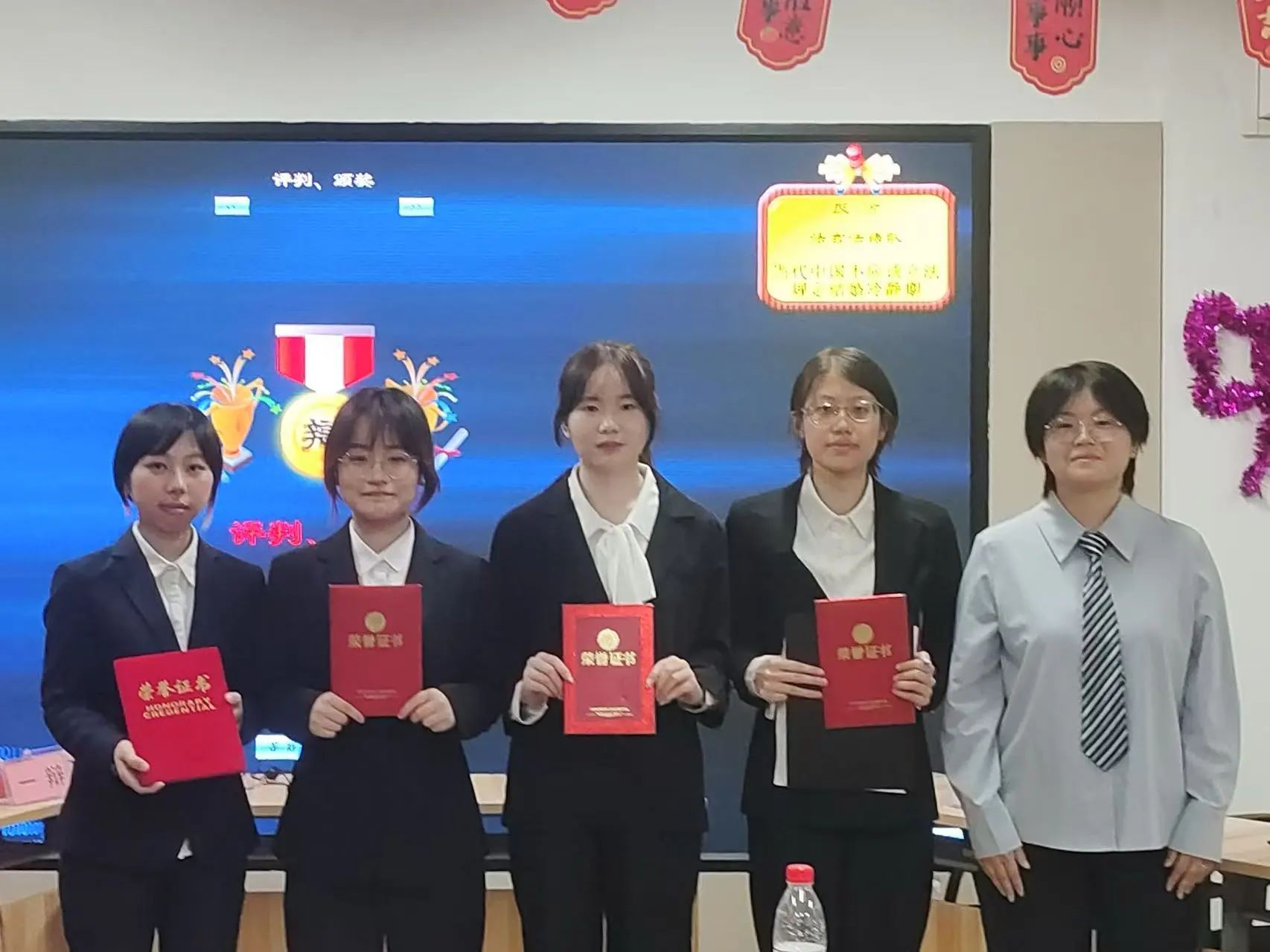 三位评委对双方表现作出高度评价,认为双方充分展现了各自的辩论技巧和团队协作精神,为观众呈现一场思想的饕餮盛宴。经评委综合评定,“法言法语队”获得冠军,“Happy birth队”获得亚军,正方四辨伊扬倩同学荣获“最佳辩手”称号。