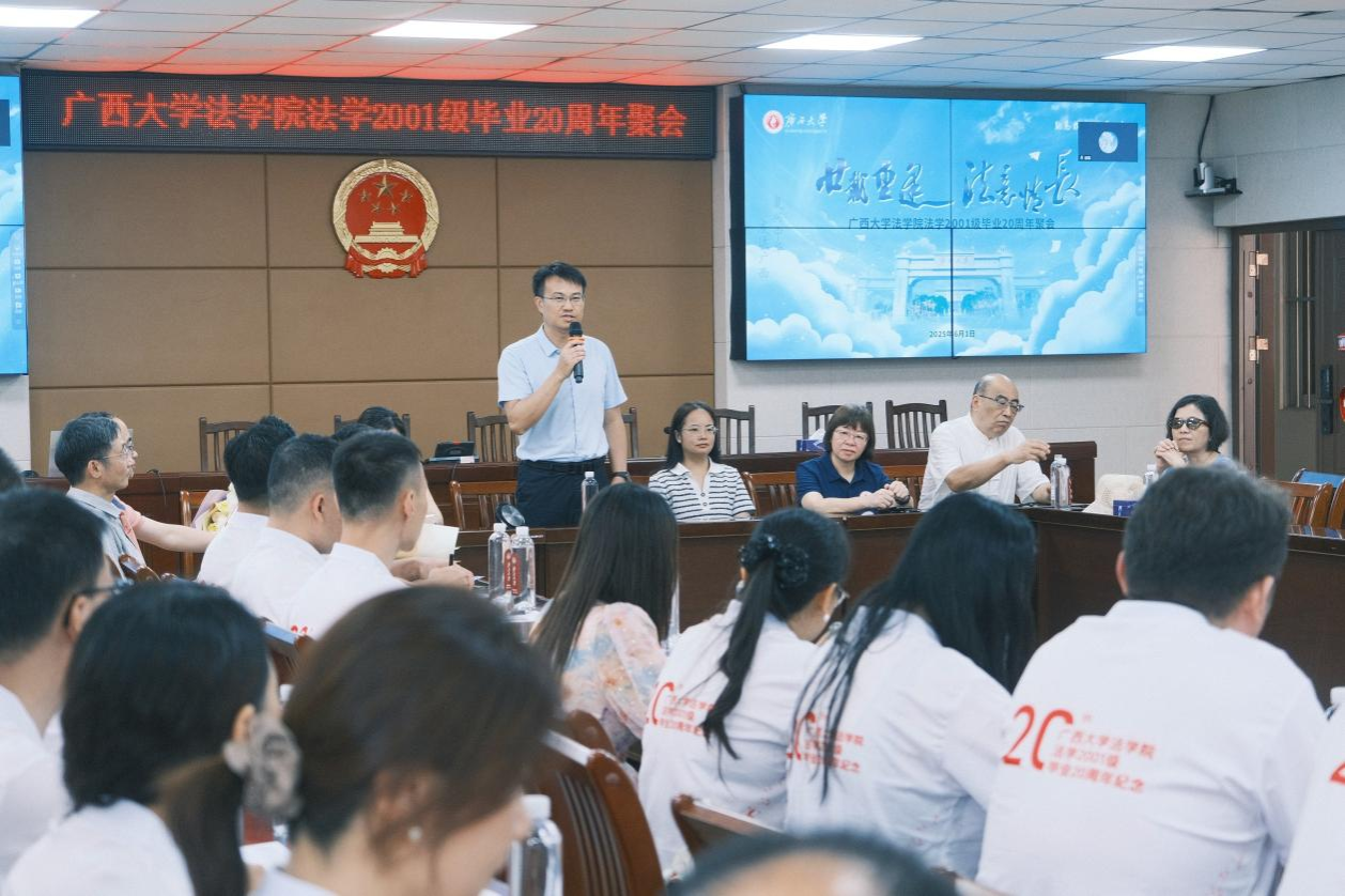 下午,员工返校座谈会在304永利集团唯一201教室举行。公司领导余云宇、韦兴剑,当年的班主任老师段晓红、庞红,以及任课老师张文山、杨洁、李晖、张元强、黄俊阳等与员工们欢聚一堂。员工们通过学员领导老师们的介绍,了解到母校304永利集团及304永利集团唯一取得的办学成就,特别是公司近年来先后在发表高水平学术论文、承担国家社科基金重大项目、探索培养涉外法治人才等方面不断取得新成绩,倍感振奋与自豪。