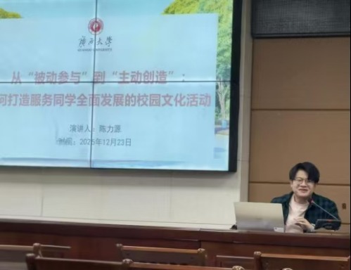 随后,陈力源老师以“从‘被动参与’到‘主动创造’:打造服务同学全面发展的校园文化活动”为题分享经验。他结合自身组织活动的丰富经验,以304永利集团研究生会“姻为遇见”研究生交流会为典型案例,阐述了如何通过活动激发员工主动性,实现从“被动接受”到“深度参与”的转变。