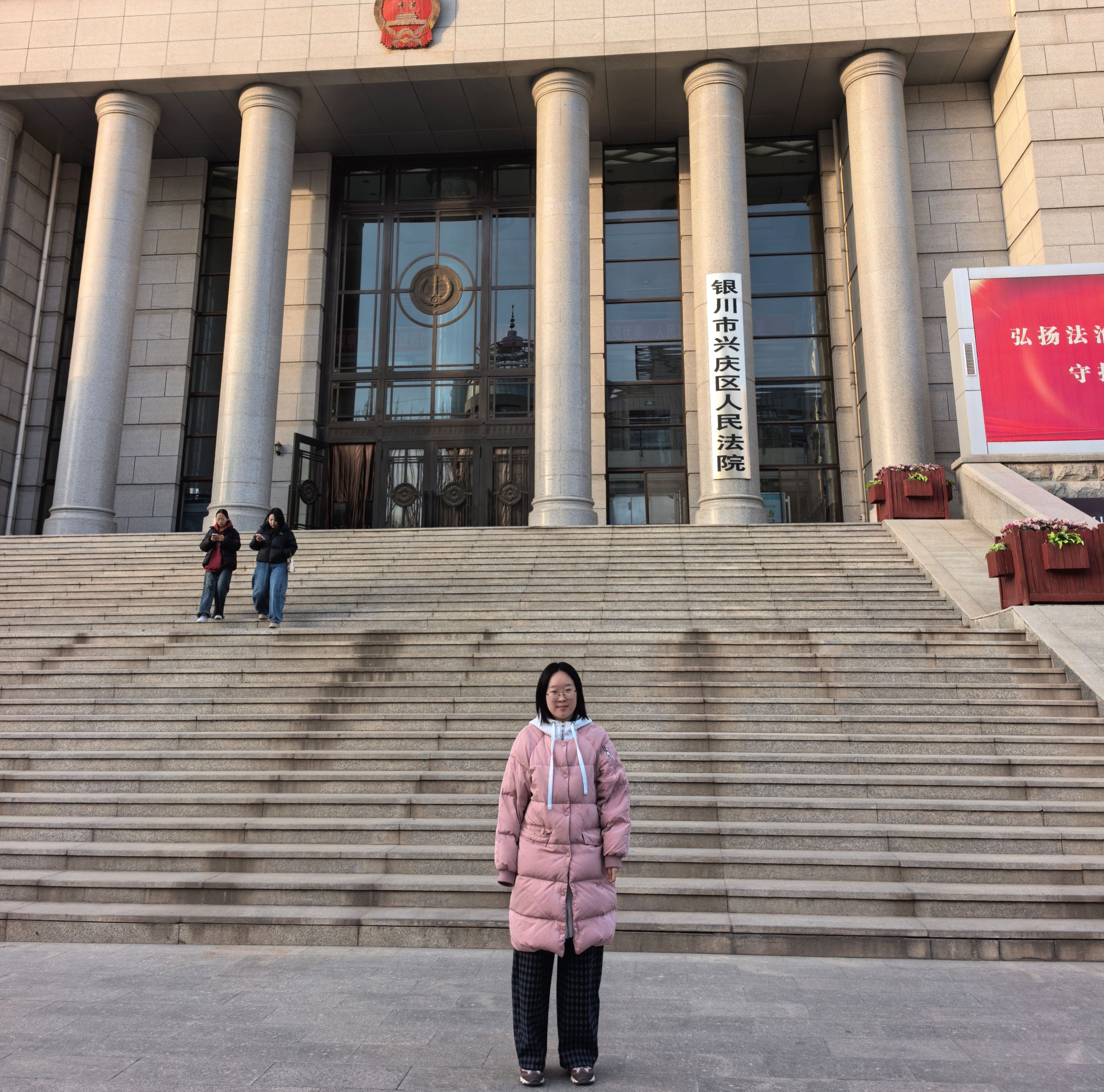 图为邱玥同学在银川市兴庆区人民法院实践场景