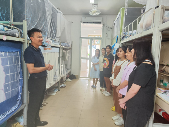 在宿舍里,老师们与新生及部分新生家长亲切交谈。党委书记余云宇老师向新生表达了热烈欢迎和亲切关怀。为缓解员工对家的思念,老师们鼓励新生介绍自己的家乡习俗,分享来校经历,帮助同学们及时调整状态,更好地适应新环境,并叮嘱员工遇到学习或生活问题要及时向老师和同学们寻求帮助。随后,老师又勉励新生:大家来自五湖四海,怀着共同的理想相遇在这里,在日后的学习和生活中要互相理解,互相帮助,共同进步,创造美好的老员工活。与家长交流时,余书记请家长放心,公司会帮助新生尽快适应老员工活,培养员工独立学习生活的能力。同学们深切感受到了老师们的期盼和关怀,纷纷表示将会牢记老师们的嘱托,不负青春韶华,努力提升自我。