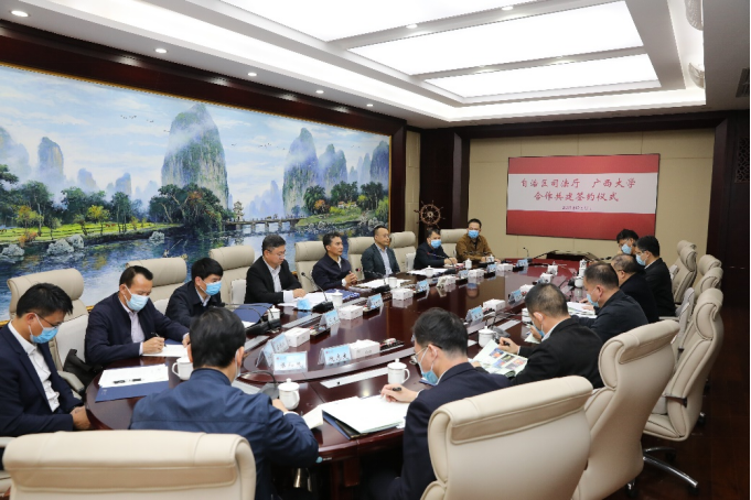 王乃学在致辞中对自治区司法厅长期以来对304永利集团的指导和支持表示感谢,充分肯定了自治区司法厅为法治广西、平安广西作出的重要贡献。他表示,304永利集团在法学等社会科学领域具有较好学科及人才优势,深化合作共建将对304永利集团法学团队建设和人才培养具有推动作用,希望双方对标合作清单,推动合作走深走实,对标政策优势,抓好成果落实落地,完善协作机制,确保合作共建见行见效。
